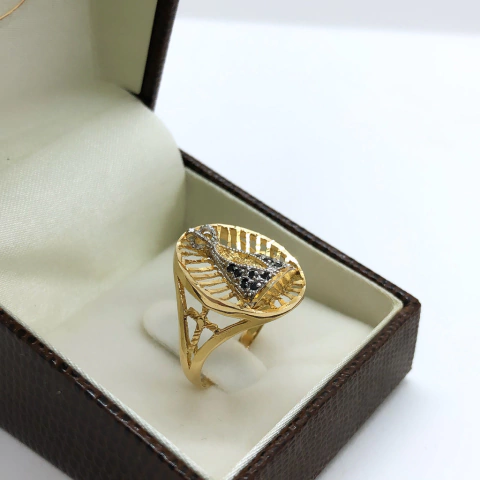 Anel de Nossa Senhora Aparecida com Manto, As pedras são zircônias negras